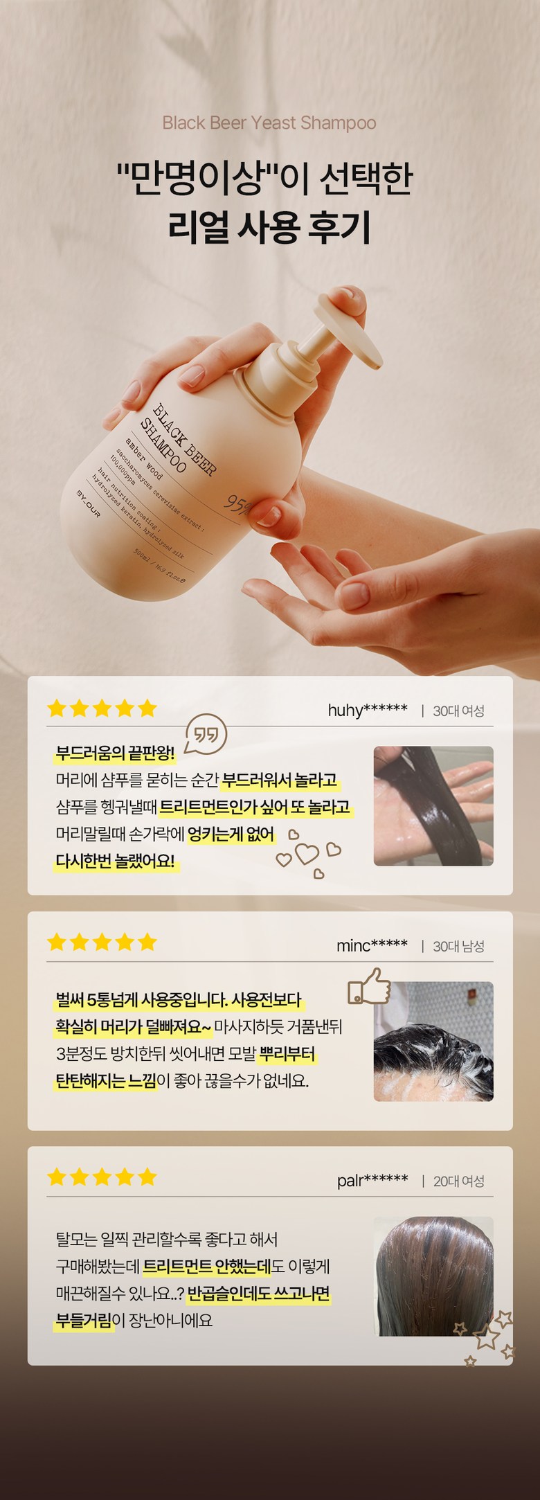두피가려움증과 점점 가늘어지는 모발로 인해 탈모에 좋다는 맥주효모샴푸를 구매했는데 가려움증도 가라앉고 모발도 굵어지는 것 같아요^^