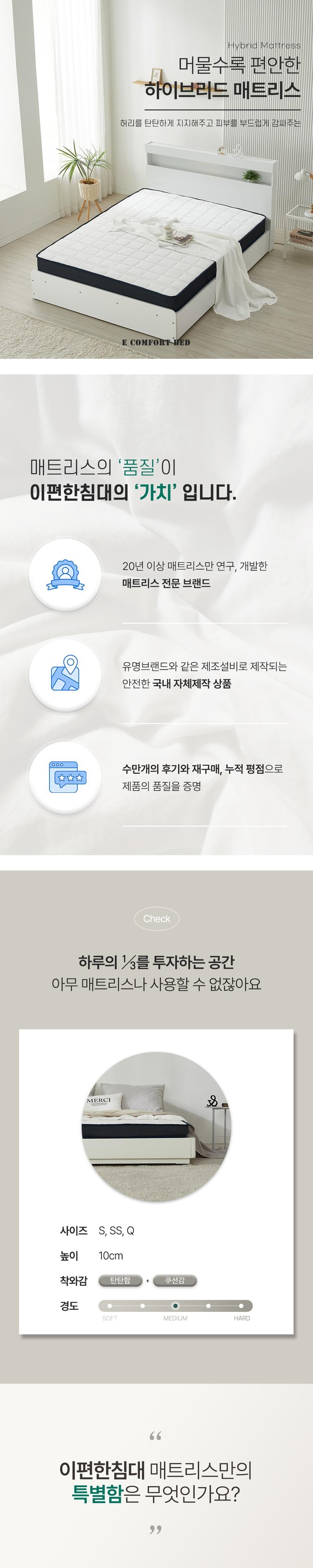 이편한침대 루나 독립스프링 롤팩 매트리스 10cm + 방수커버