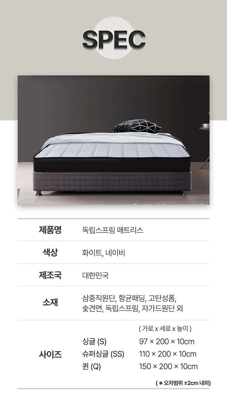 이편한침대 루나 독립스프링 롤팩 매트리스 10cm + 방수커버 > 가구·DIY | 에뽀끄몰