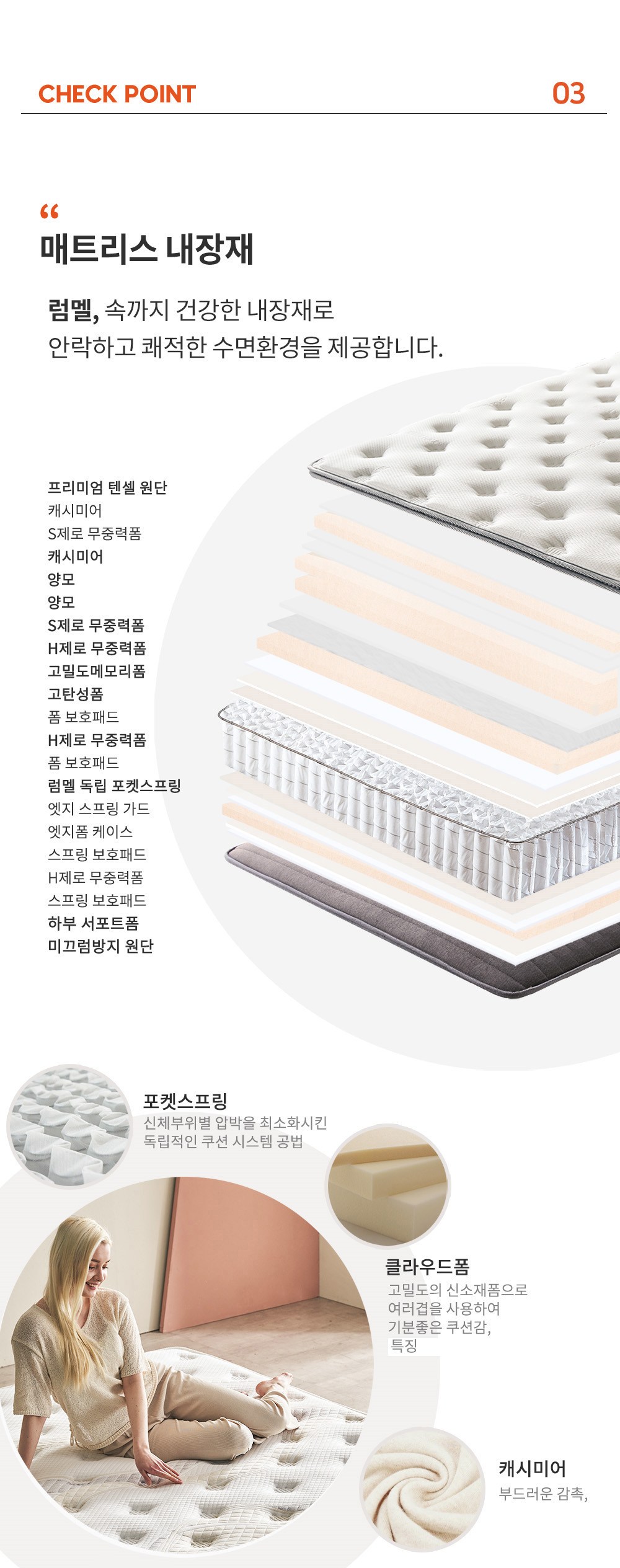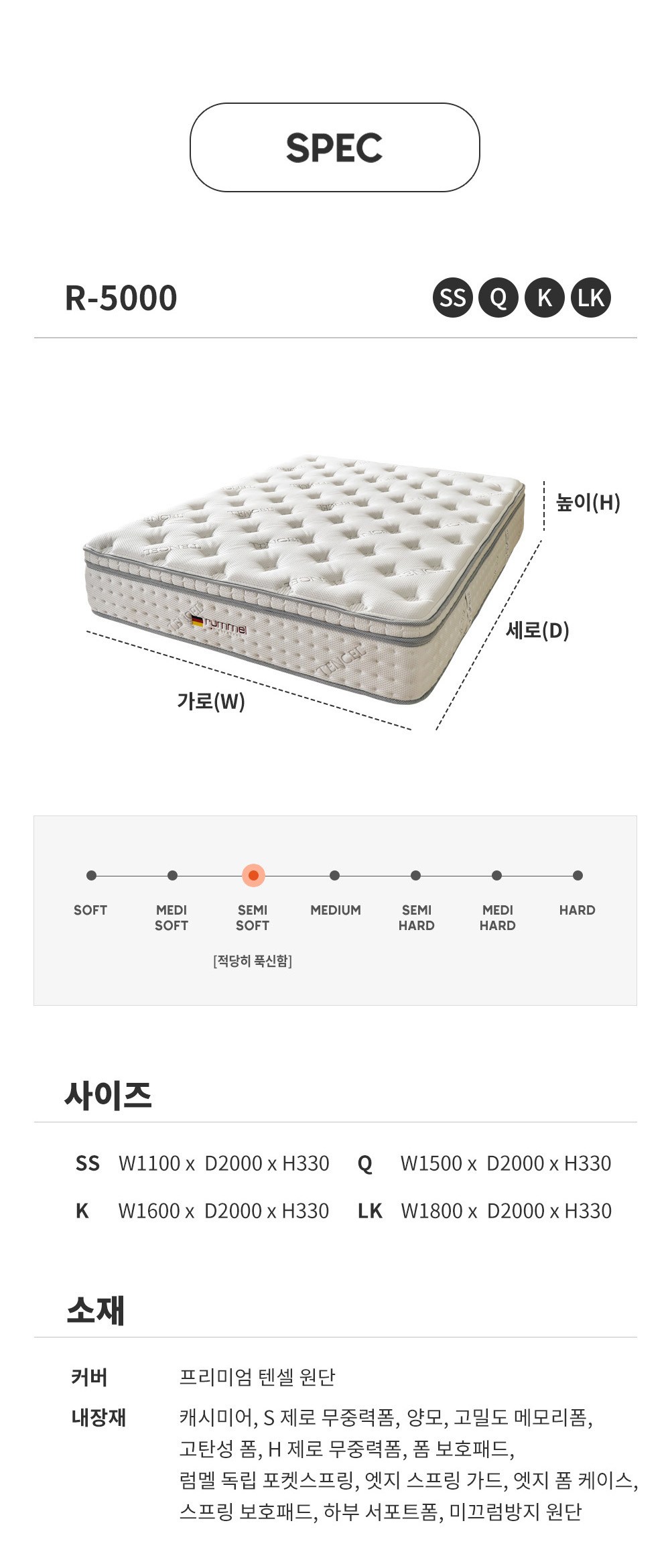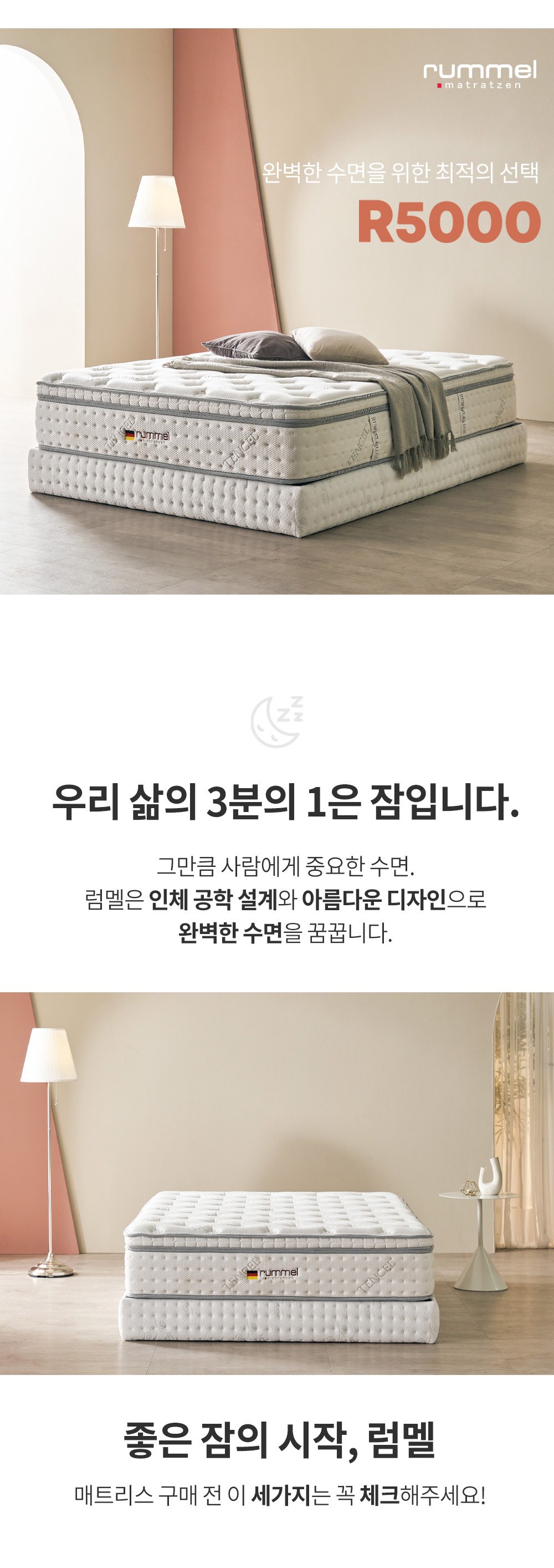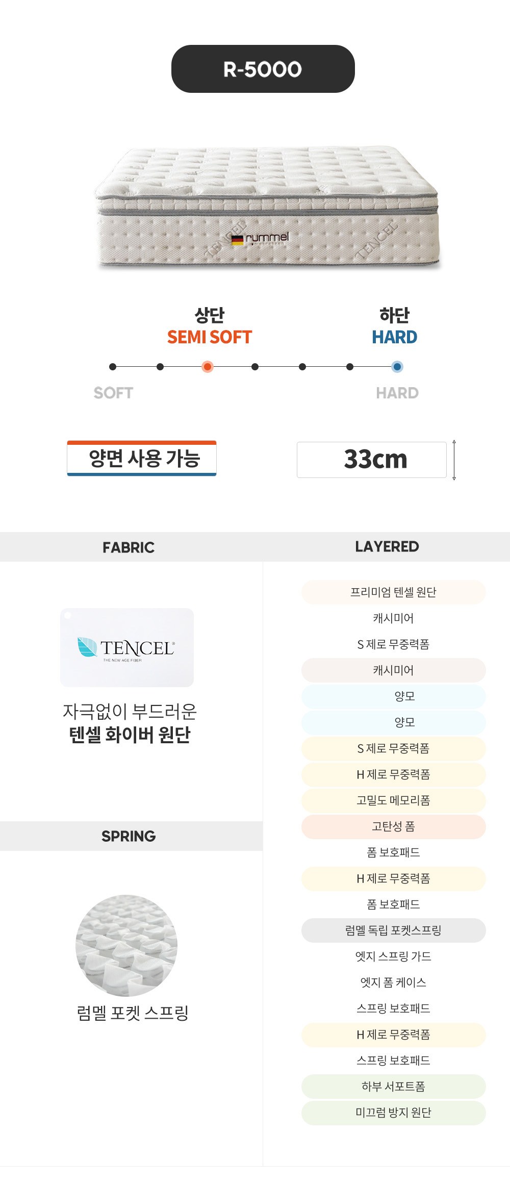 럼멜 R5000 포켓 독립 스프링 침대 매트리스 텐셀 메모리폼 호텔 두께 330mm 방문설치