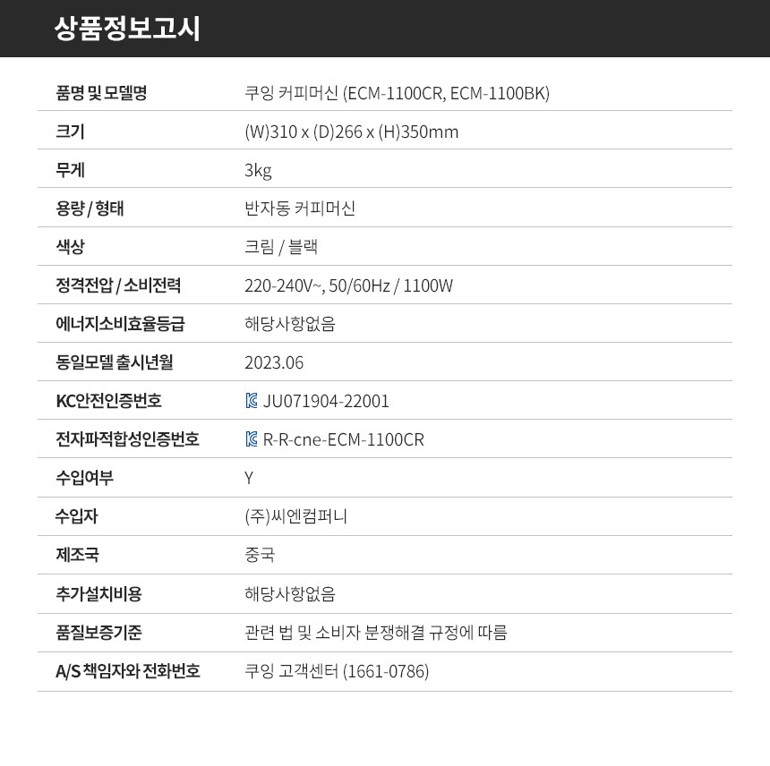 쿠잉 레트로 커피머신 / ECM-1100CR