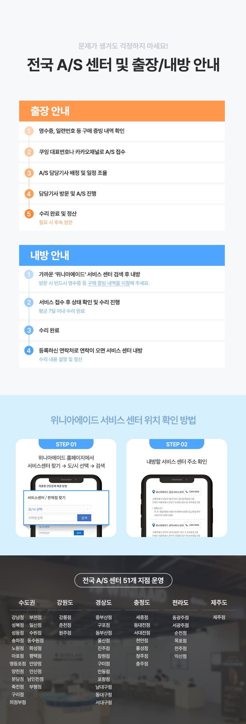 제품 이상 시 공정거래위원회 고시 소비자분쟁해결기준에 의거 보상합니다.