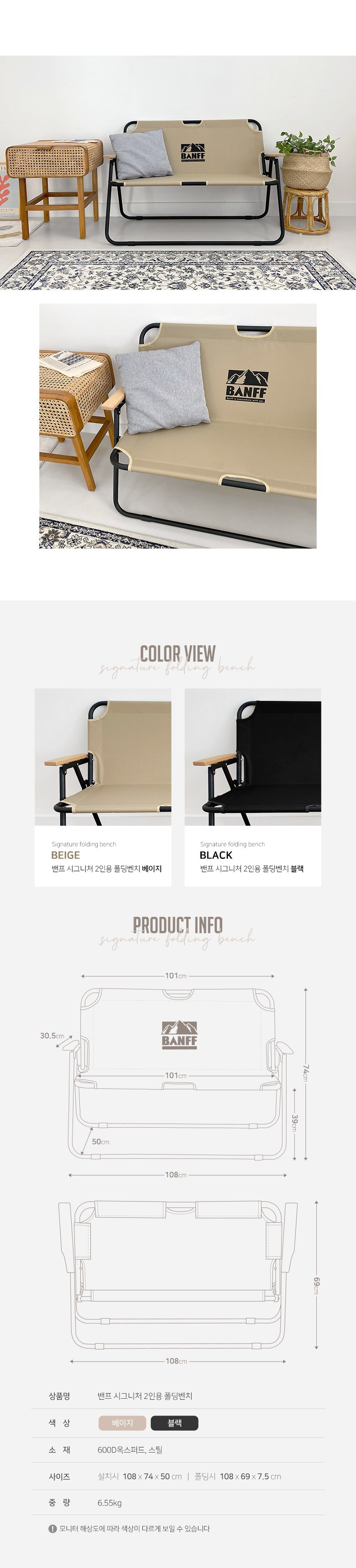 밴프 시그니처 2인용 폴딩벤치 블랙[OC106]