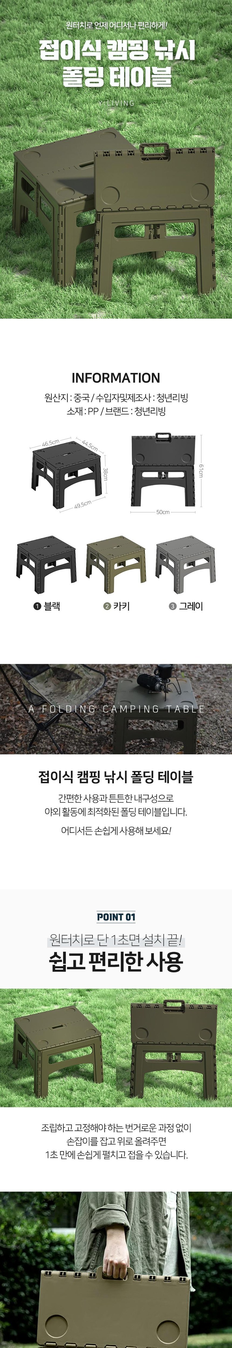 청년리빙 접이식 캠핑 폴딩 미니 테이블, 카키