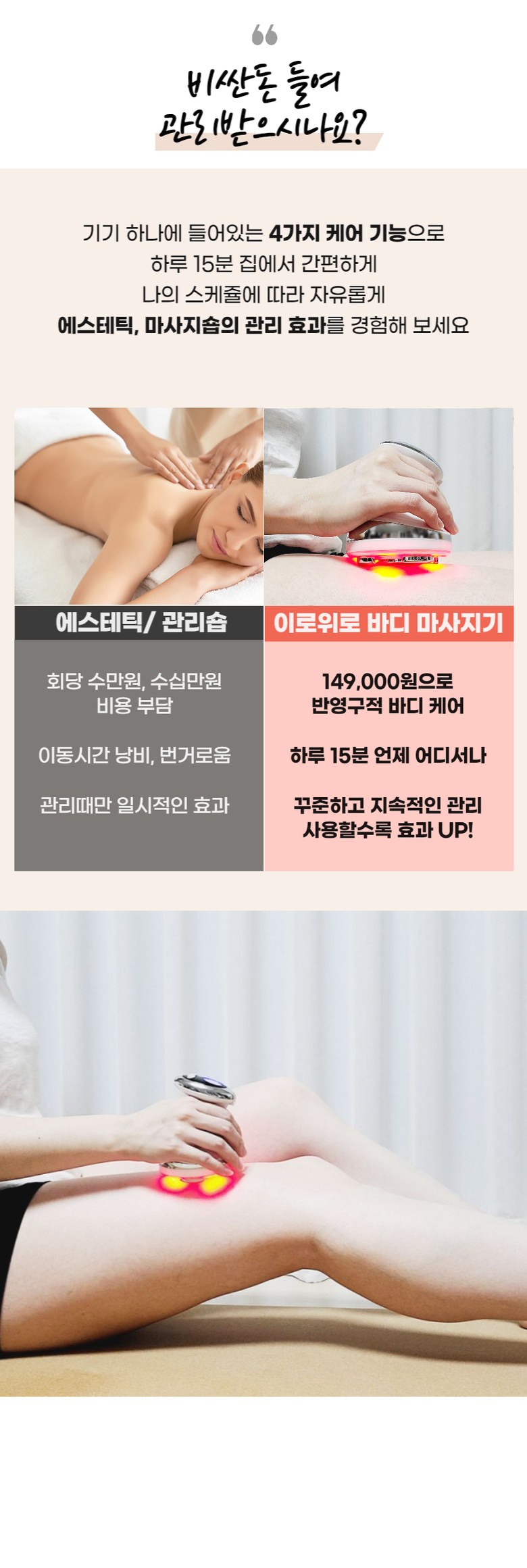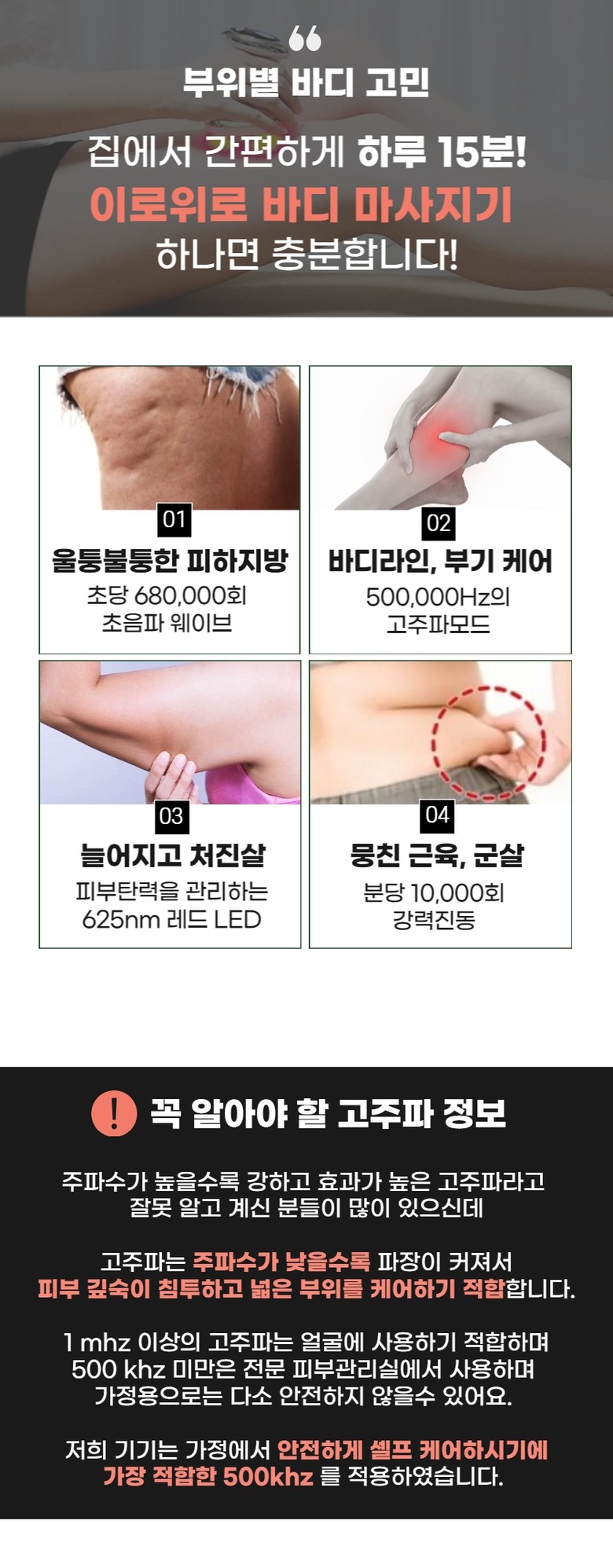 이로위로 바디 고주파 마사지기 온열 갈바닉 초음파 바본관리 가정용고주파기 홈케어 뷰티디바이스