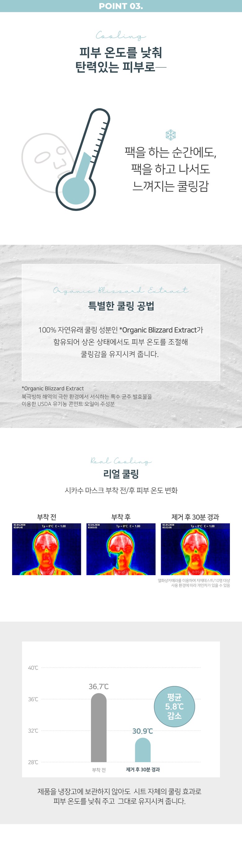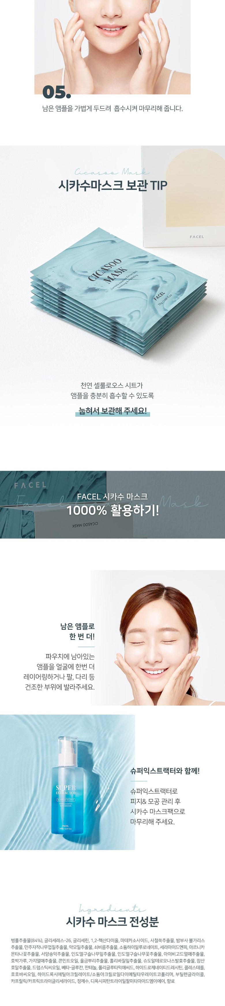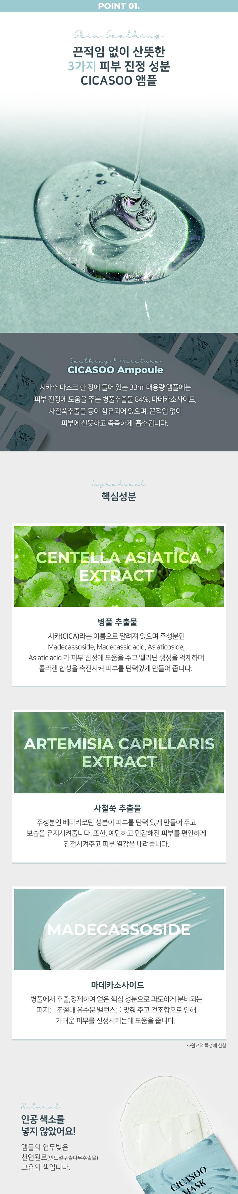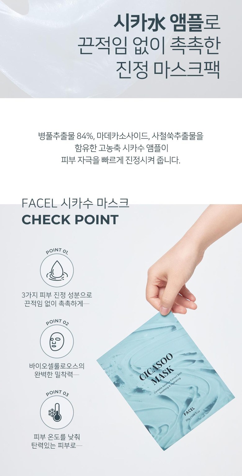앰플이 흐르지 않아 붙이기도 좋고 밀착력이 좋네요 넉넉한 시트 크기로 얼굴 전체에 완벽히 부착되구요 ~ 진정 효과, 보습력, 또 천연 쿨링 성분이 포함되어 있어 시원한 사용감에 진정효과 좋은 것 같아요 잘 쓰겠습니다.