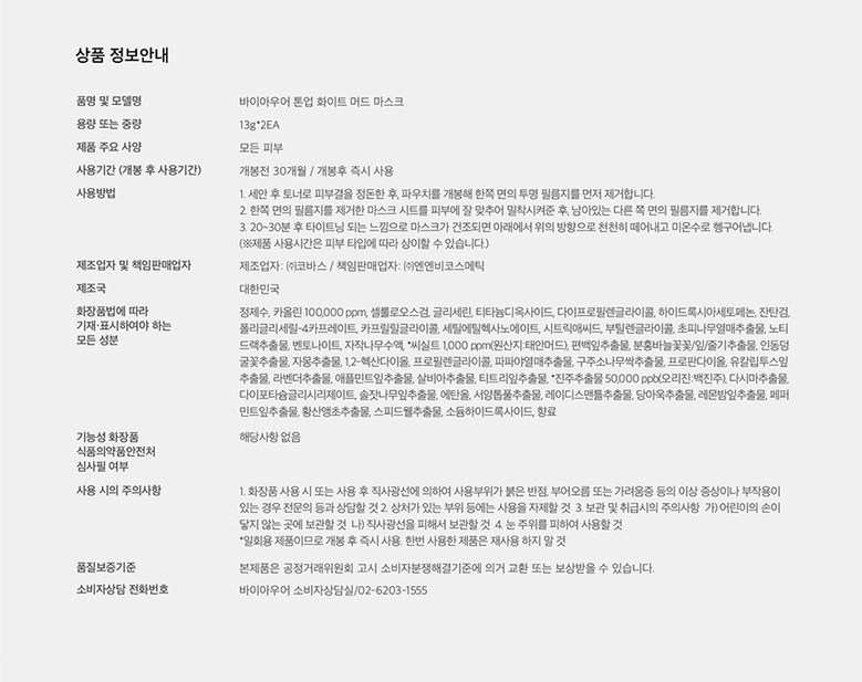 바이아우어 톤업 화이트 머드 마스크
