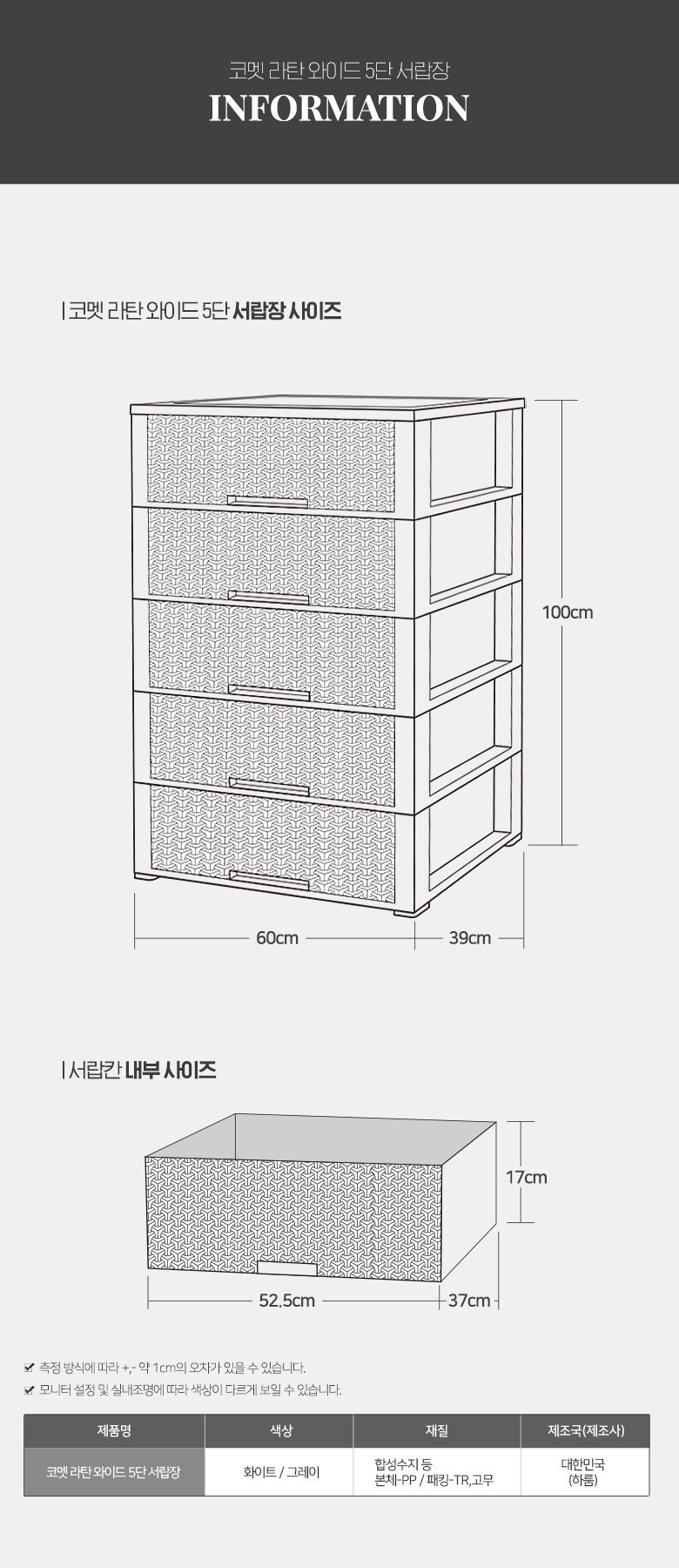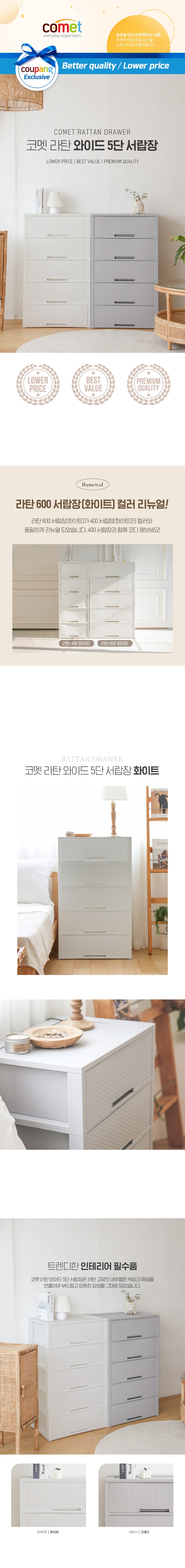 구성품 코멧 5단 라탄 서랍장 와이드 600, 화이트