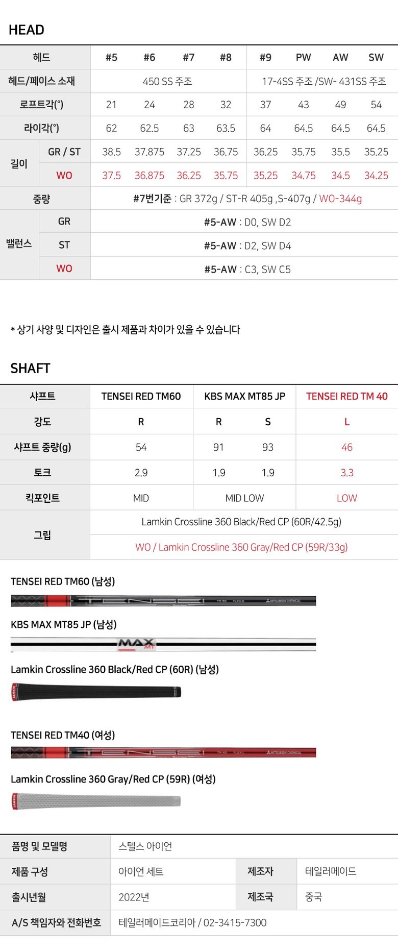 테일러메이드 2022년 스텔스 경량스틸 8아이언(5~9PAS)