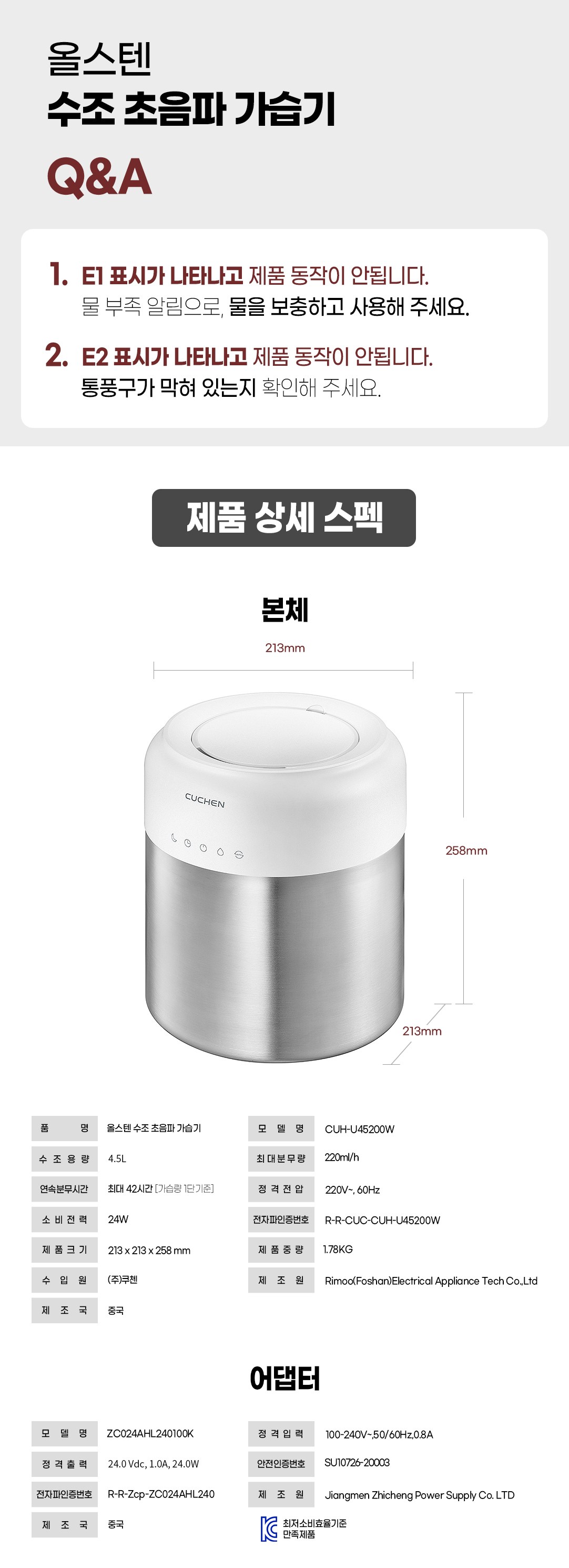 쿠첸 올스텐 수조 초음파 가습기 > 생활용품 | 에뽀끄몰