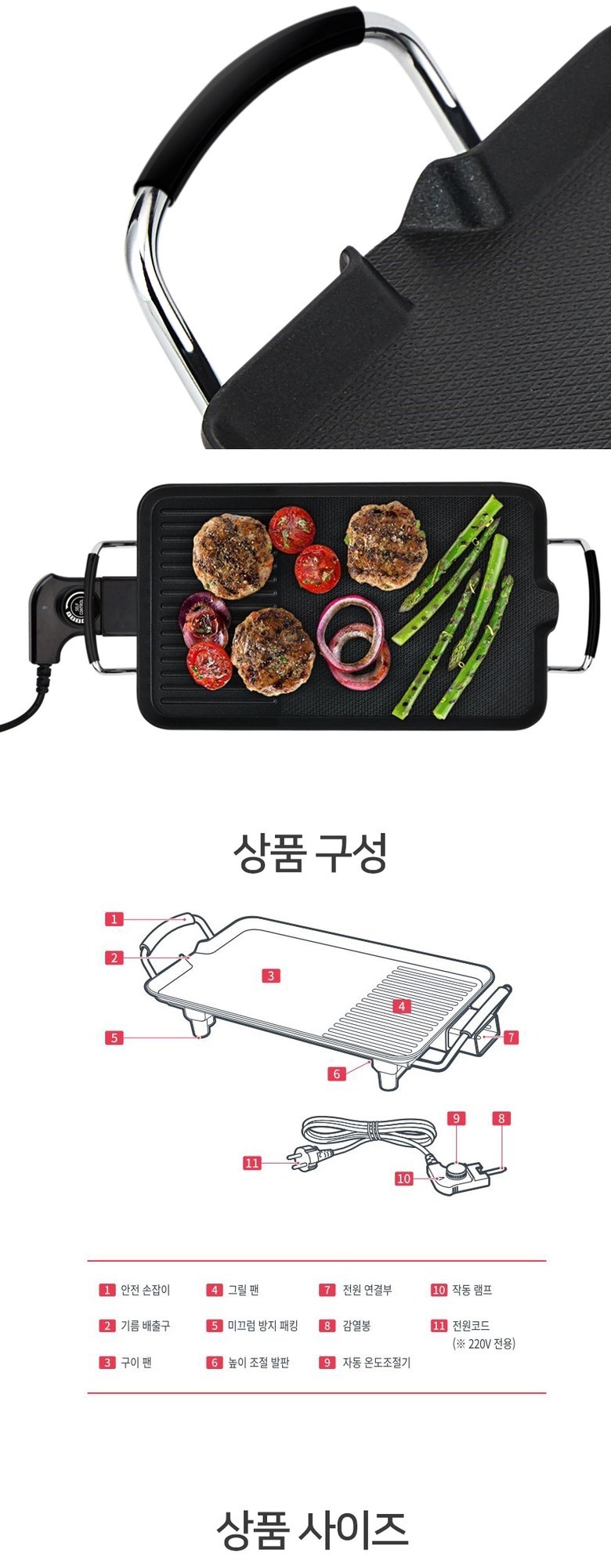 2in1 전기그릴 높이조절 전기후라이팬 와이드그릴 멀티그릴 삼겹살구이 > 주방·용품 | 에뽀끄몰