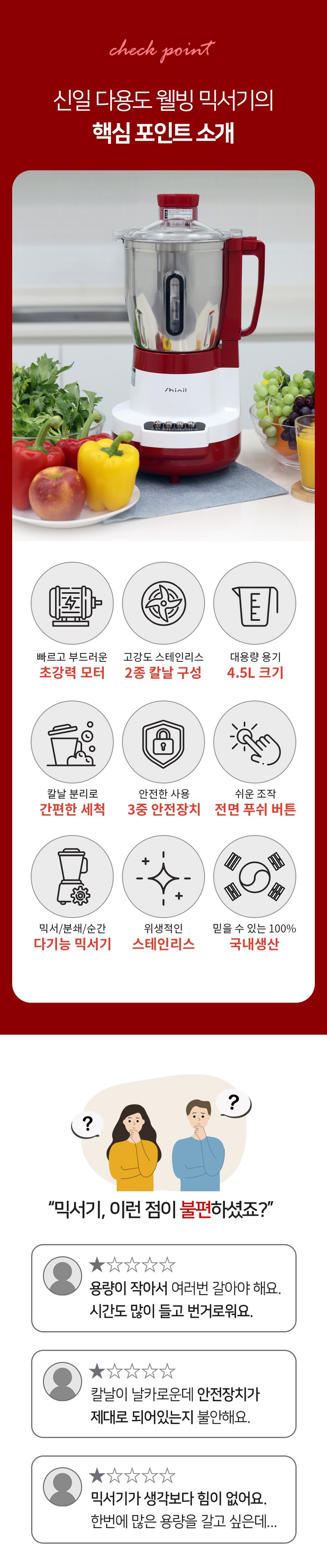 신일 국산 4.5L 대용량 대형 스텐 믹서기 SMX-WH4500 > 주방·용품 | 에뽀끄몰
