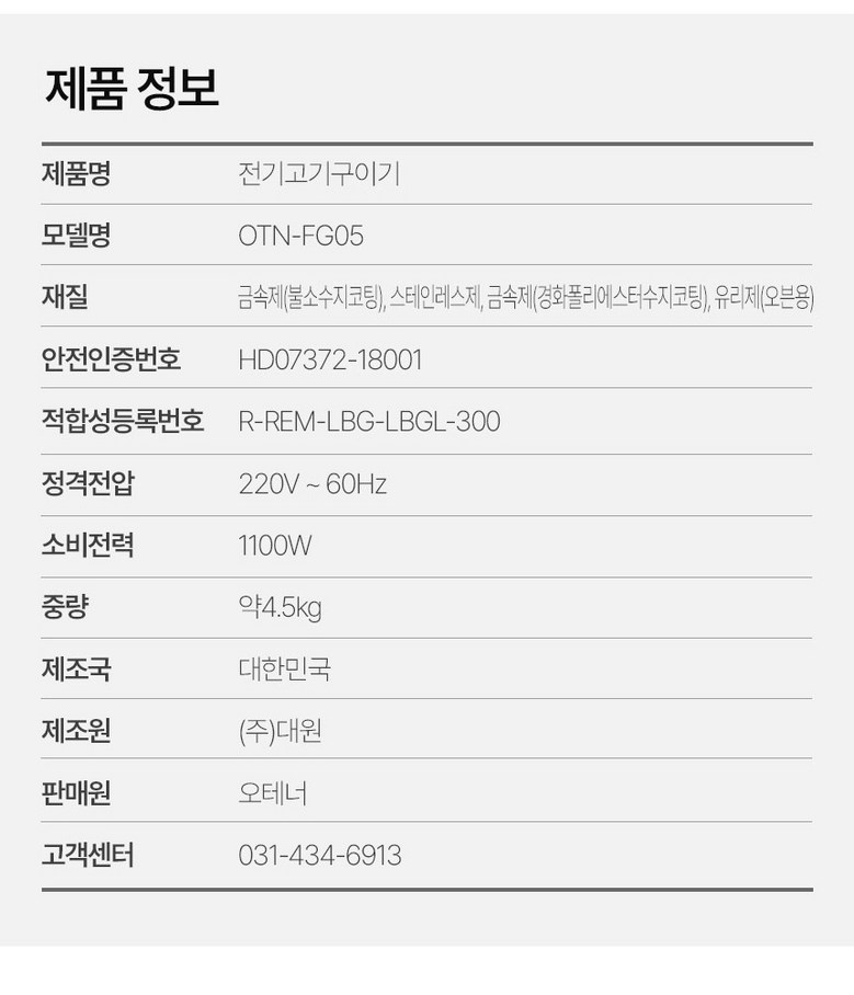 대원 x 오테너 국산 전기 양면그릴팬 생선구이기 > 주방·용품 | 에뽀끄몰
