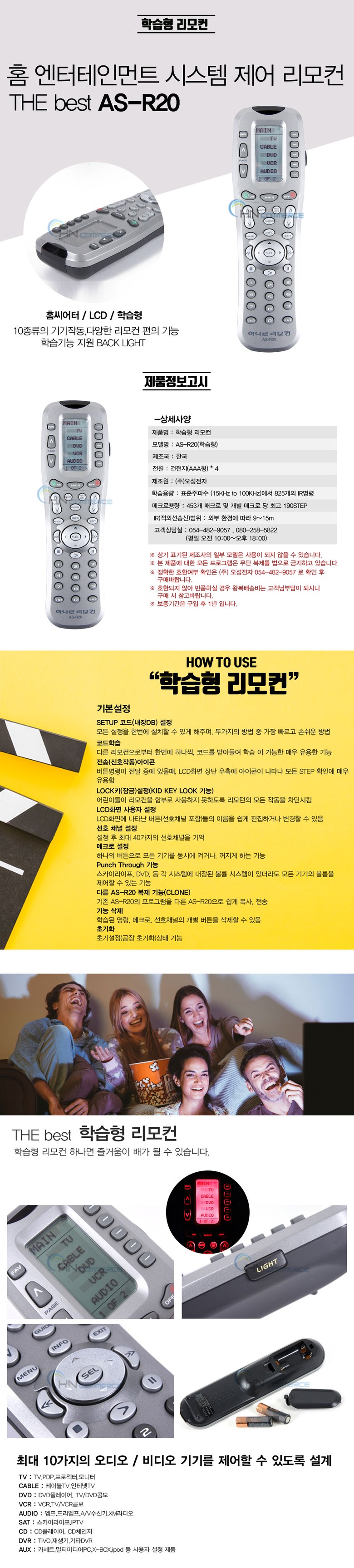 (하나로리모컨)TV/DVD/학습형/통합리모컨/AS-R20 > 주방·용품 | 에뽀끄몰