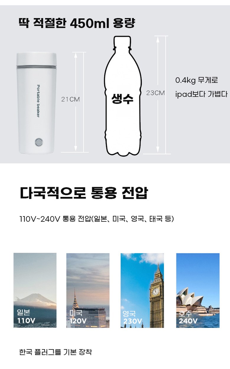여행용 전기 포트/컵+보온컵+전기포트 용도 를 하나로/스테인리스 강 미니 전기 포트/소형 전기 포트 > 주방·용품 | 에뽀끄몰