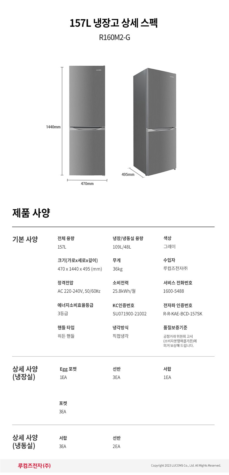 루컴즈 157L 2도어 냉장고 방문설치 > 주방·용품 | 에뽀끄몰