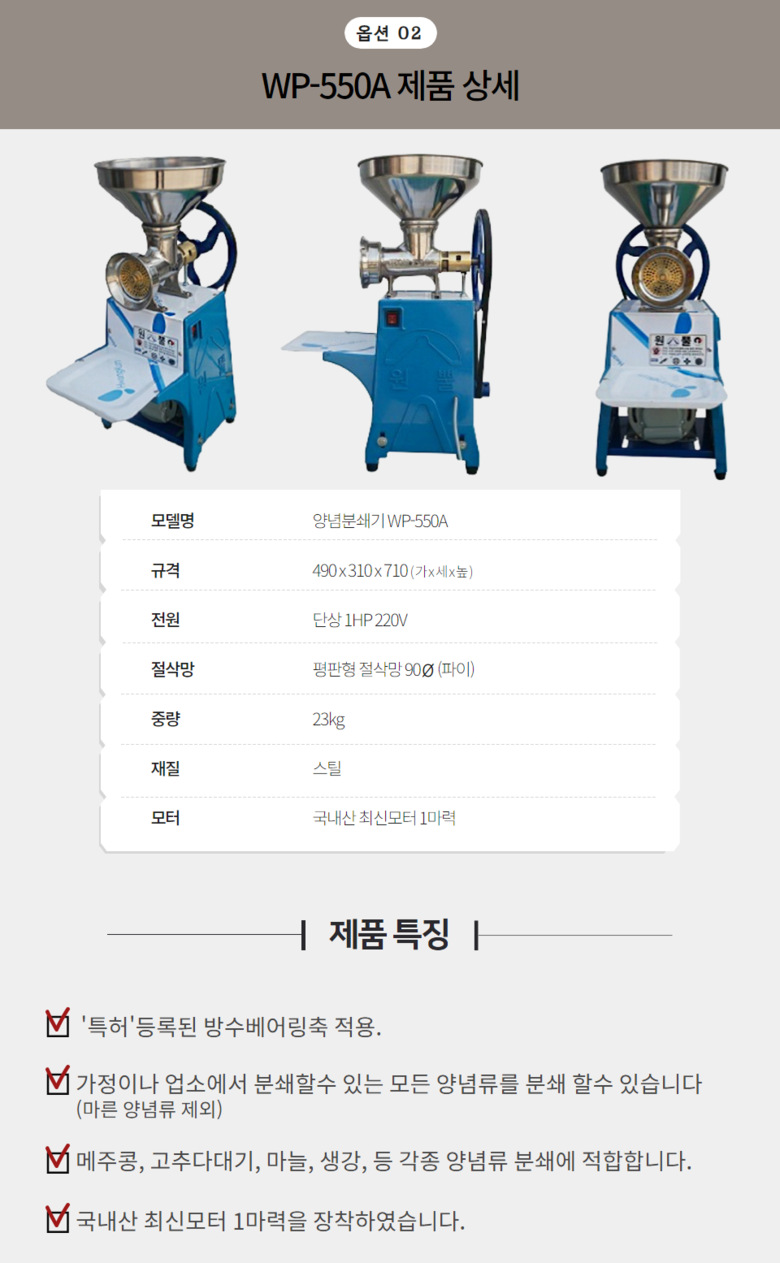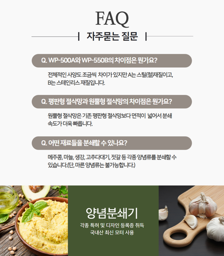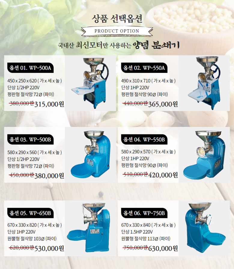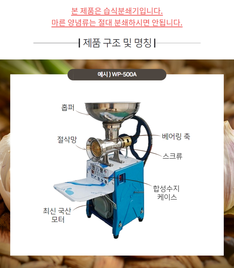 원뿔 양념분쇄기 야채 마늘 고추 김장 메주콩 업소용 영업용 분쇄기