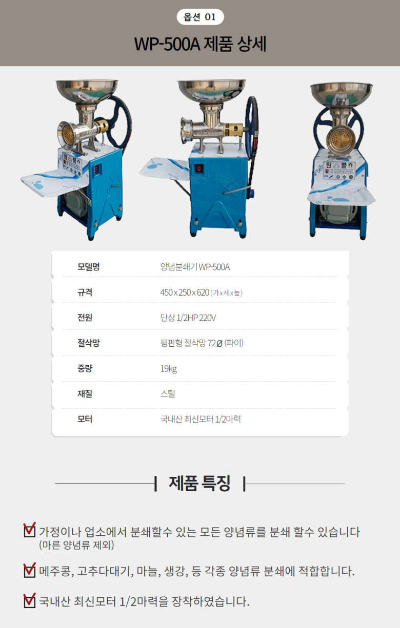 원뿔 양념분쇄기 야채 마늘 고추 김장 메주콩 업소용 영업용 분쇄기 > 주방·용품 | 에뽀끄몰