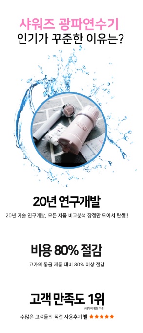 누적 판매량 30,000개 돌파먹는 물로 씻는 행복좋은 물이 되기 위한 모든 걸 담다!광파연수기 렌탈 X직접설치 가능합니다!